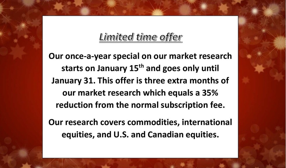 November 15, 2025: Four Weeks Until the Once-a-Year SpecialOur annual special pricing on our cutting-edge market research starts in four weeks. The research uses key economic indicators, time-tested fundamental ratios, and technical accuracy to position investors for the correct evaluation of current market conditions. Our once-a-year special offers a 35% discount on our cutting-edge research. |